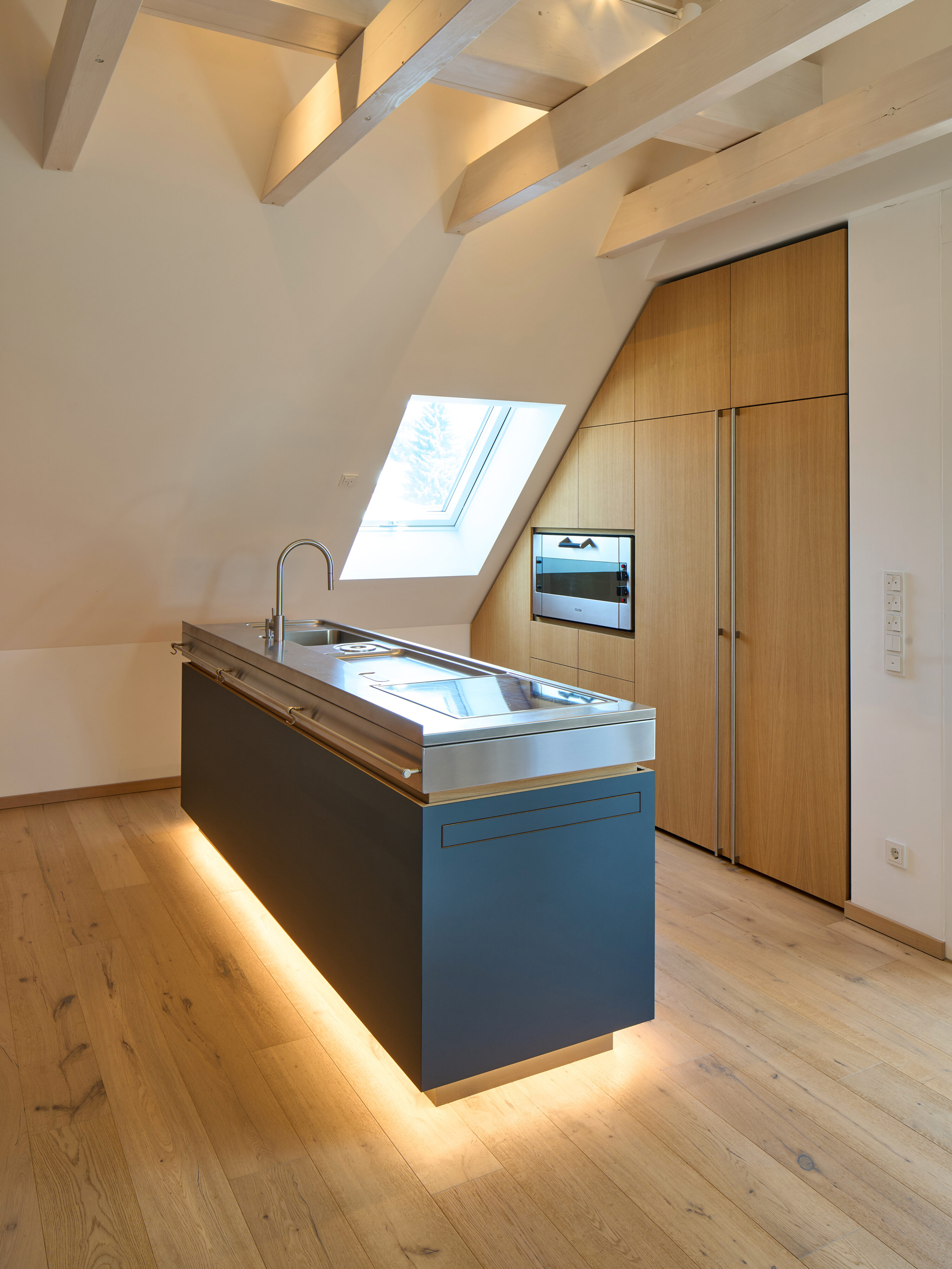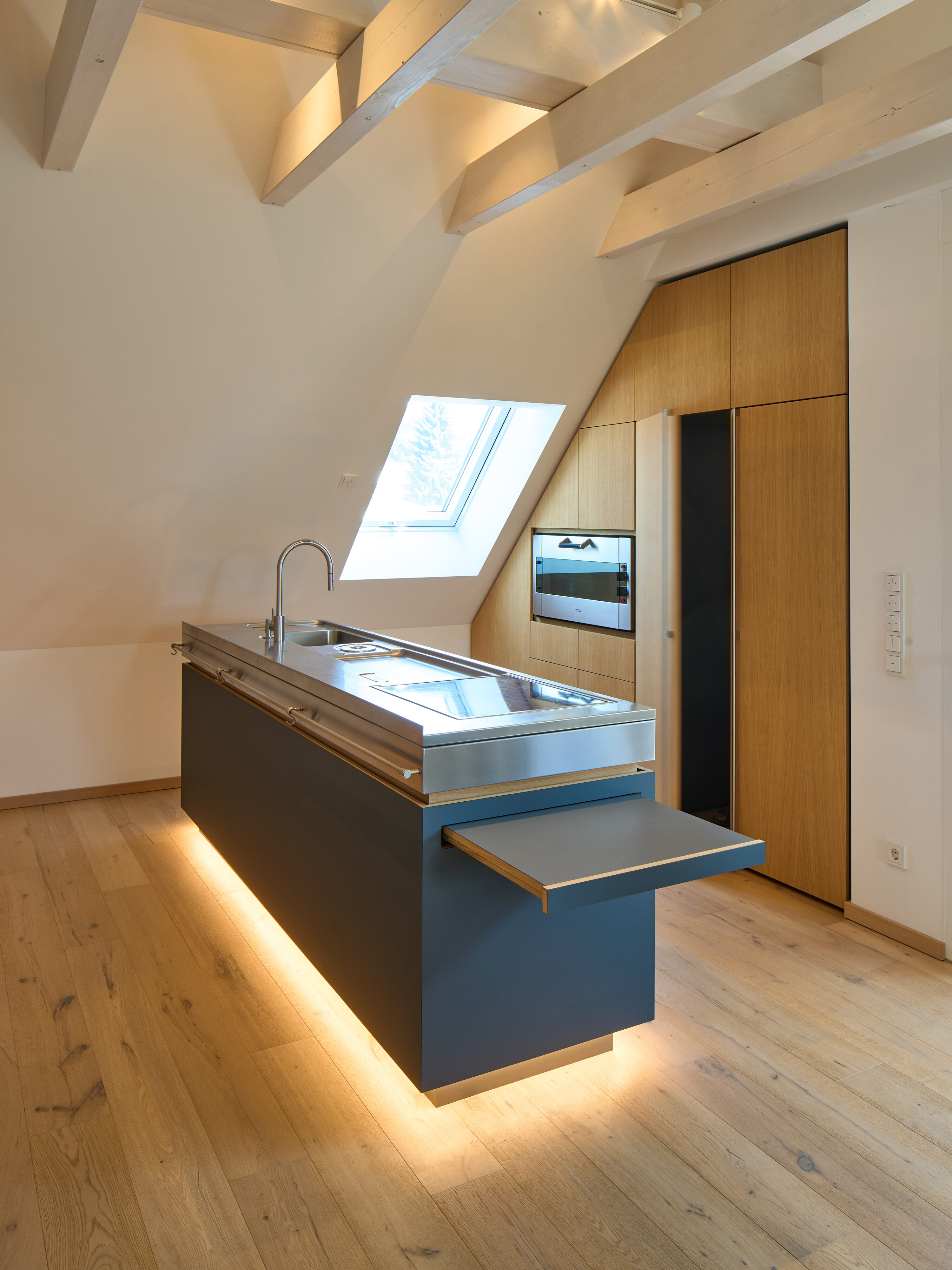 Der Ausgangspunkt dieses Küchenentwurfs war die, der Bauherrin über Jahrzehnte ans Herz gewachsene Bulthaup-Werkbank in Edelstahl.  Diese wurden zum zentralen…